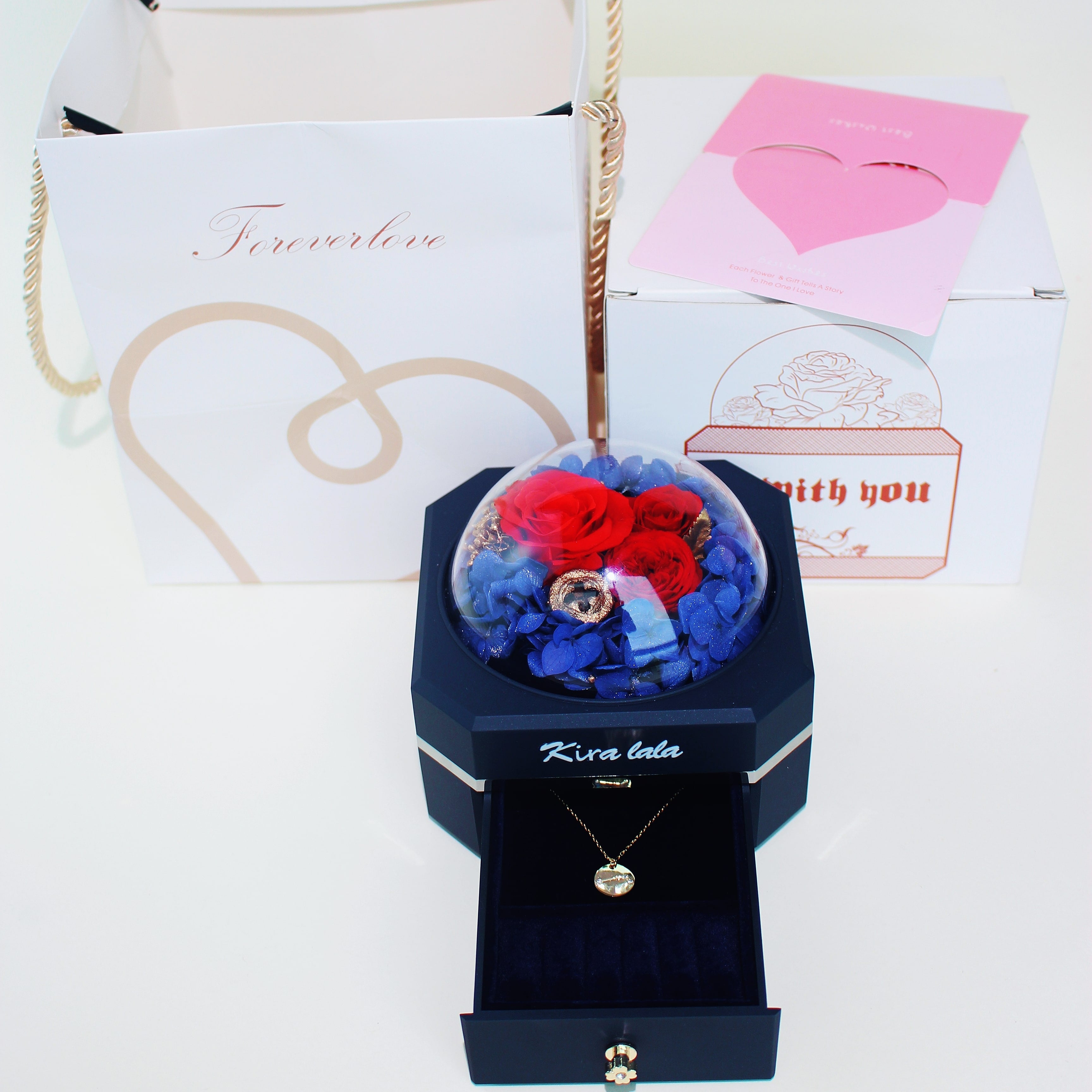 What could be more attractive to women than these two things? This is a lovely gift with unique design, meaning unique love.The preserved real rose never withers means eternal love.We believe it will be an infallible gift for her on special day!