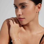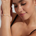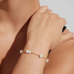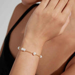 More than just your grandma’s hand-me-downs, this pearl station bracelet is our modern take on a 1980s classic. This dainty must-have bracelet is dipped in 18K gold and adorned with sev freshwater pearls. Your arm candy isn’t complete without its main course: pearls. So go ahead and start your stack off strong with the Kira pearl station bracelet.
