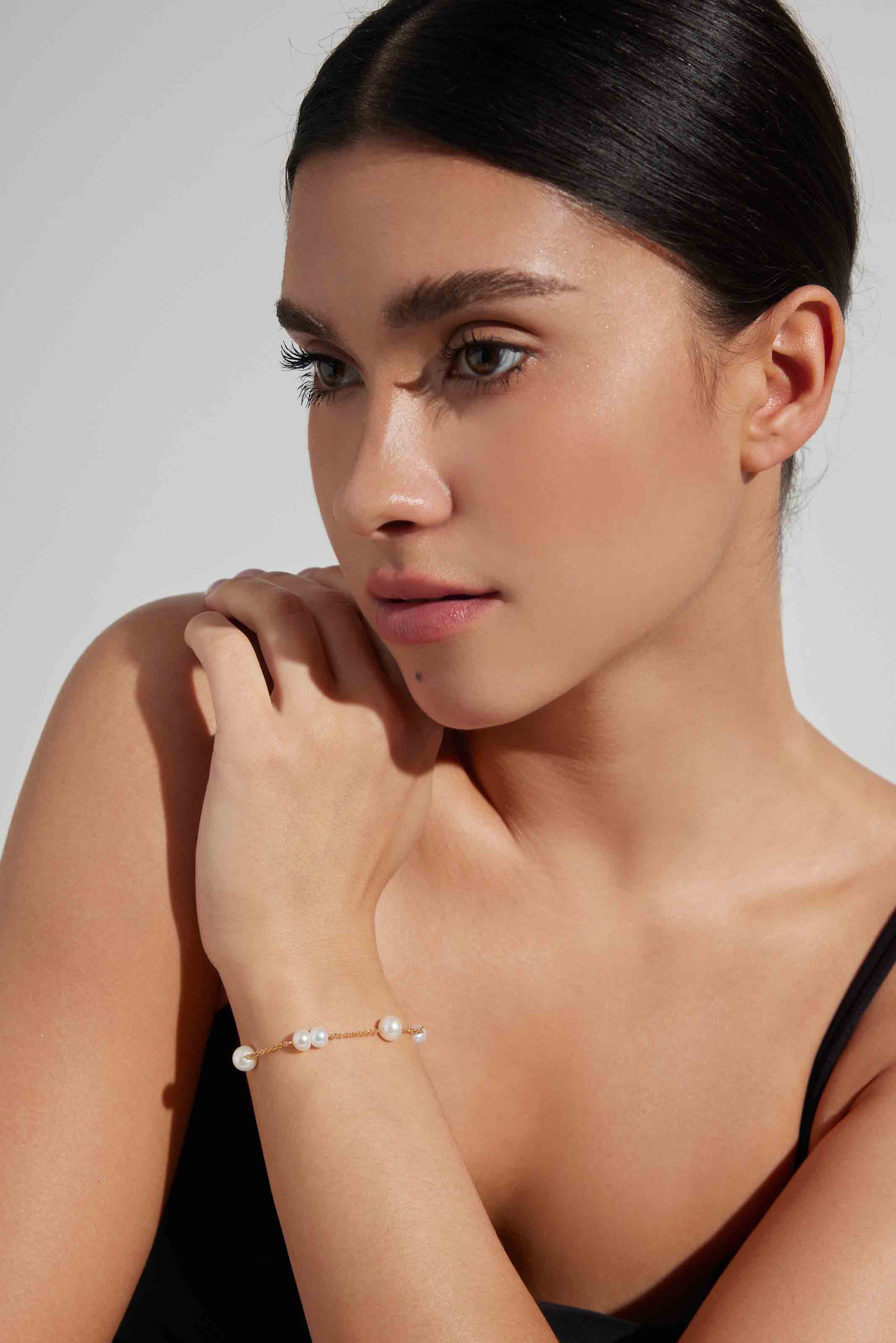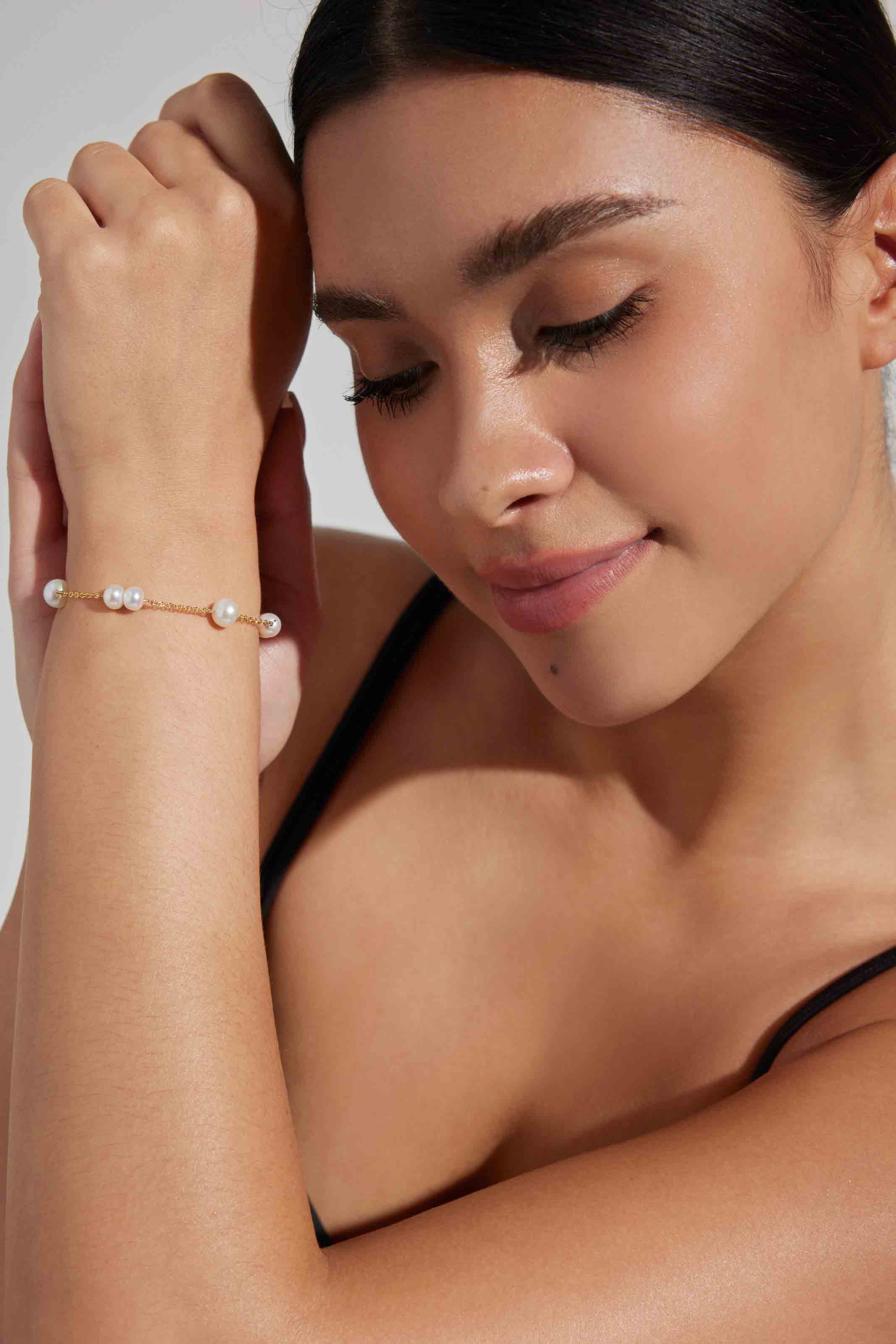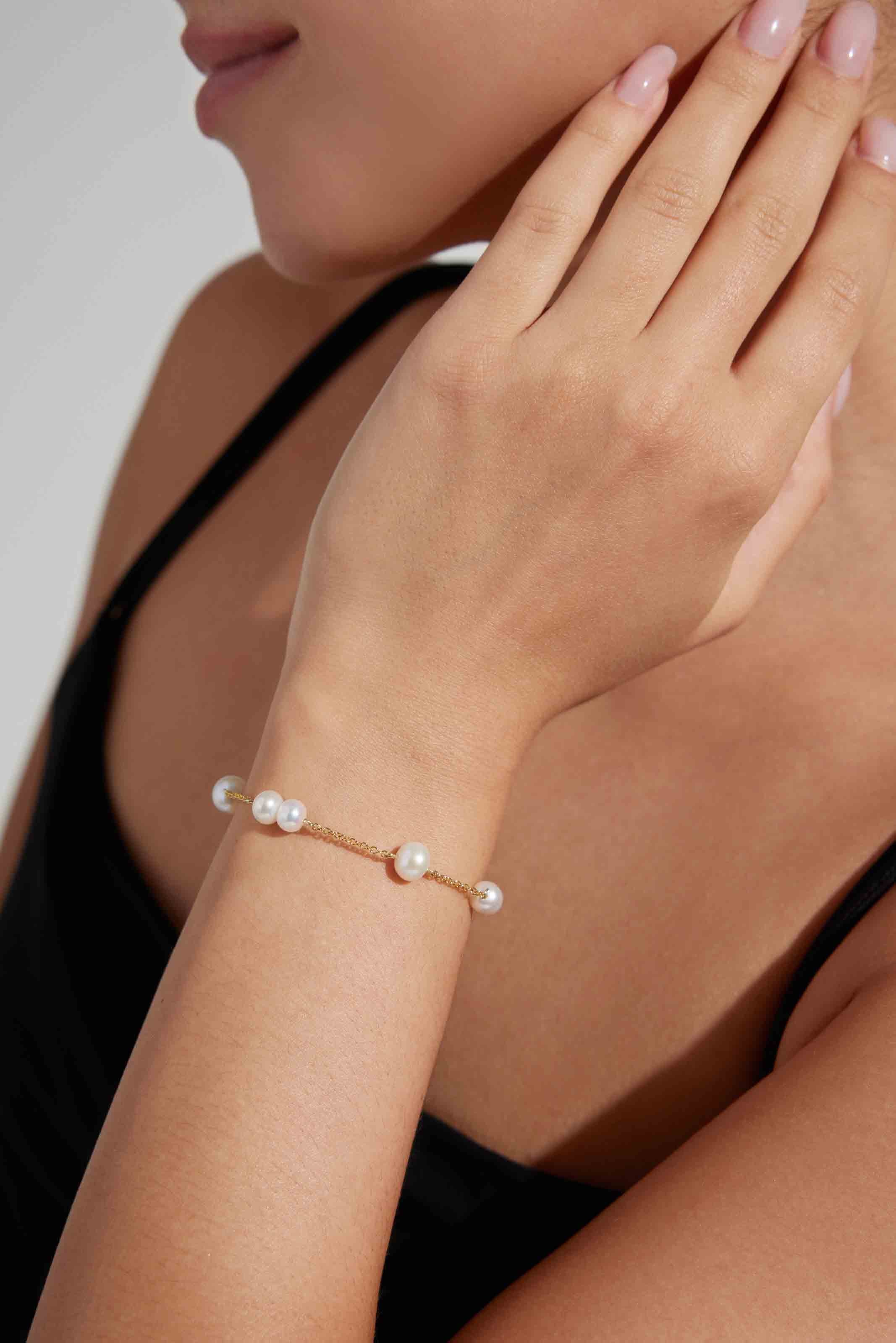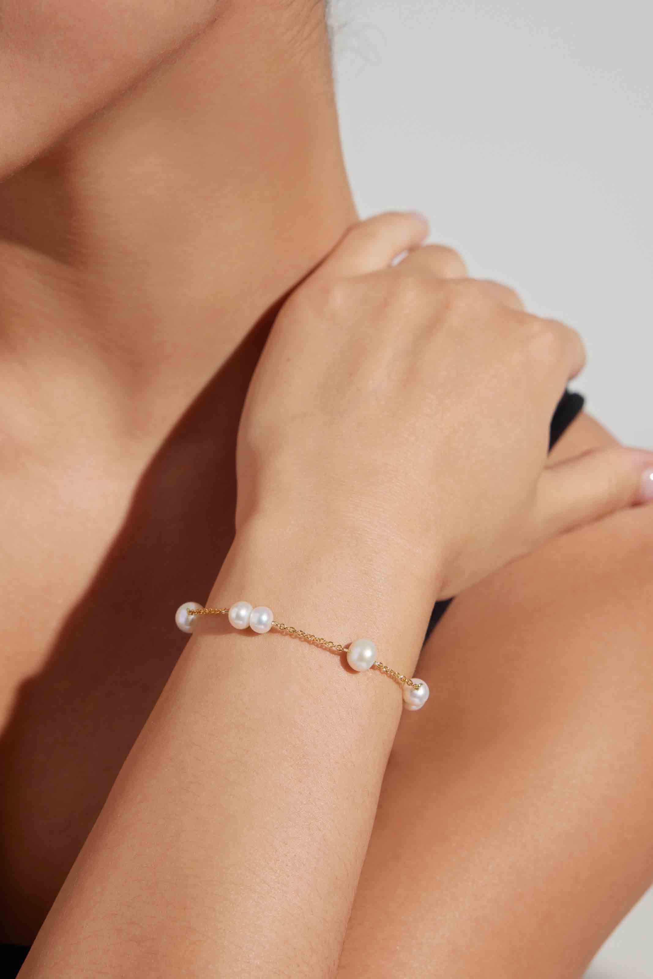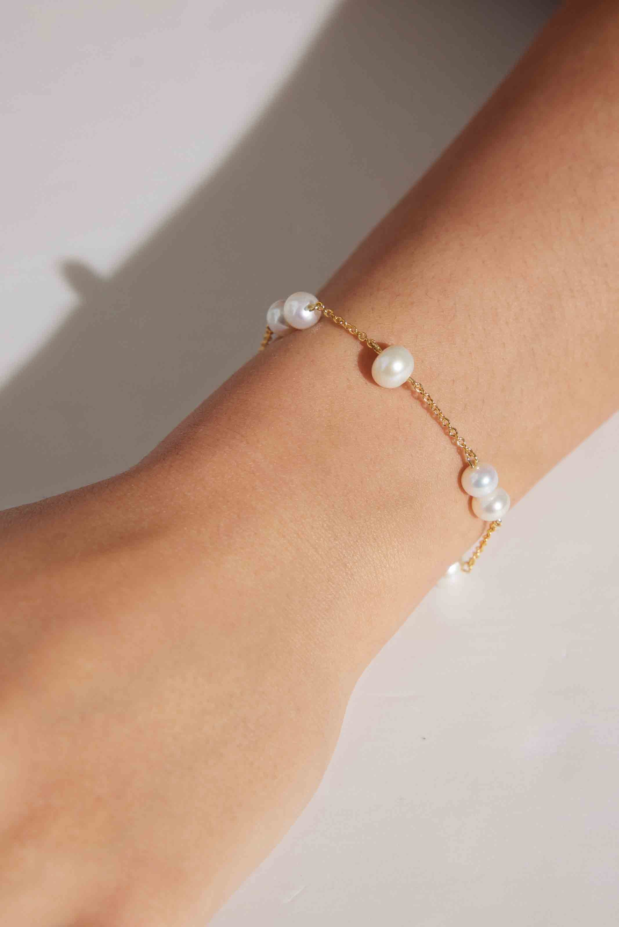 Seven Freshwater Pearls 18K Gold Vermeil Chain Bracelet – Kira LaLa