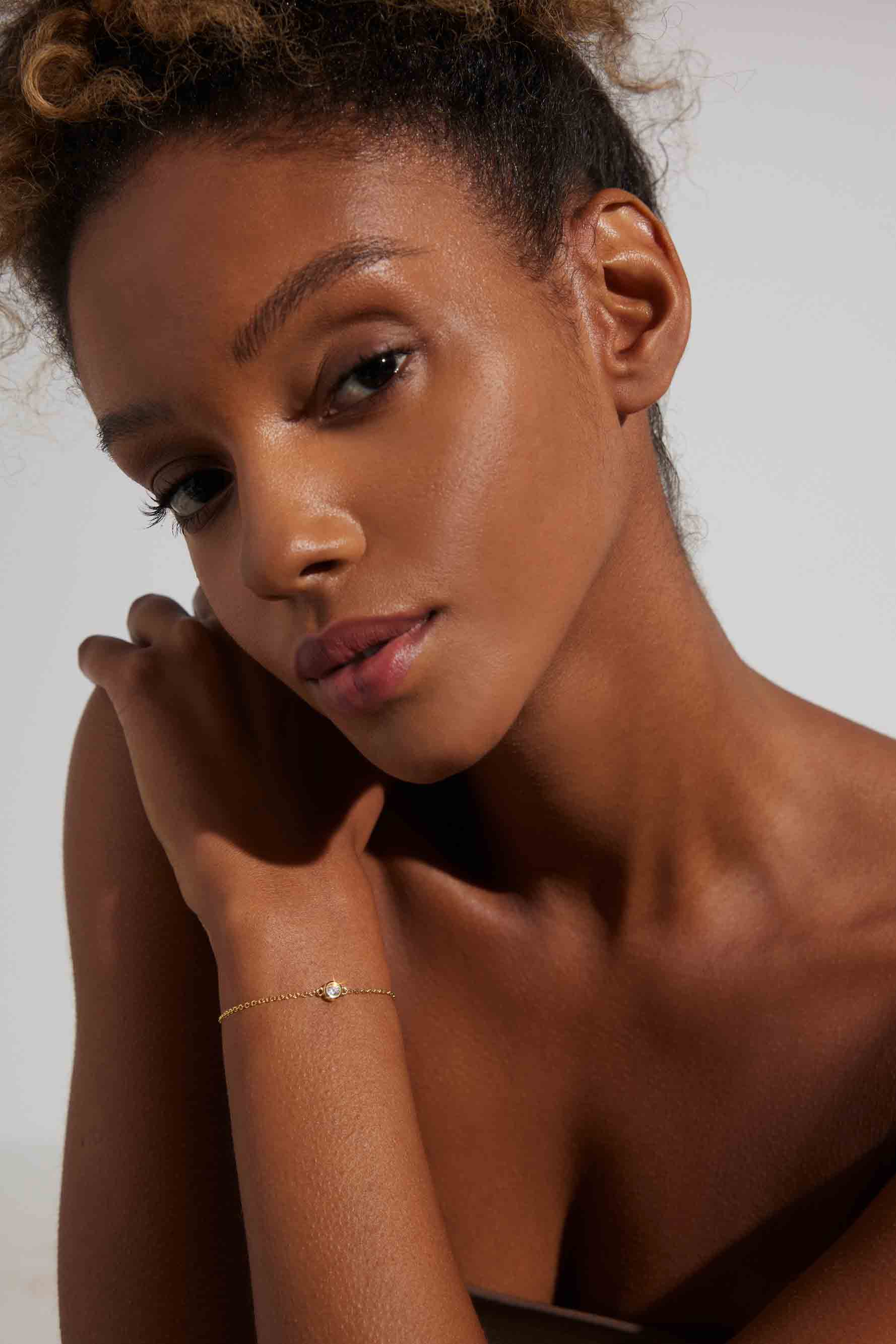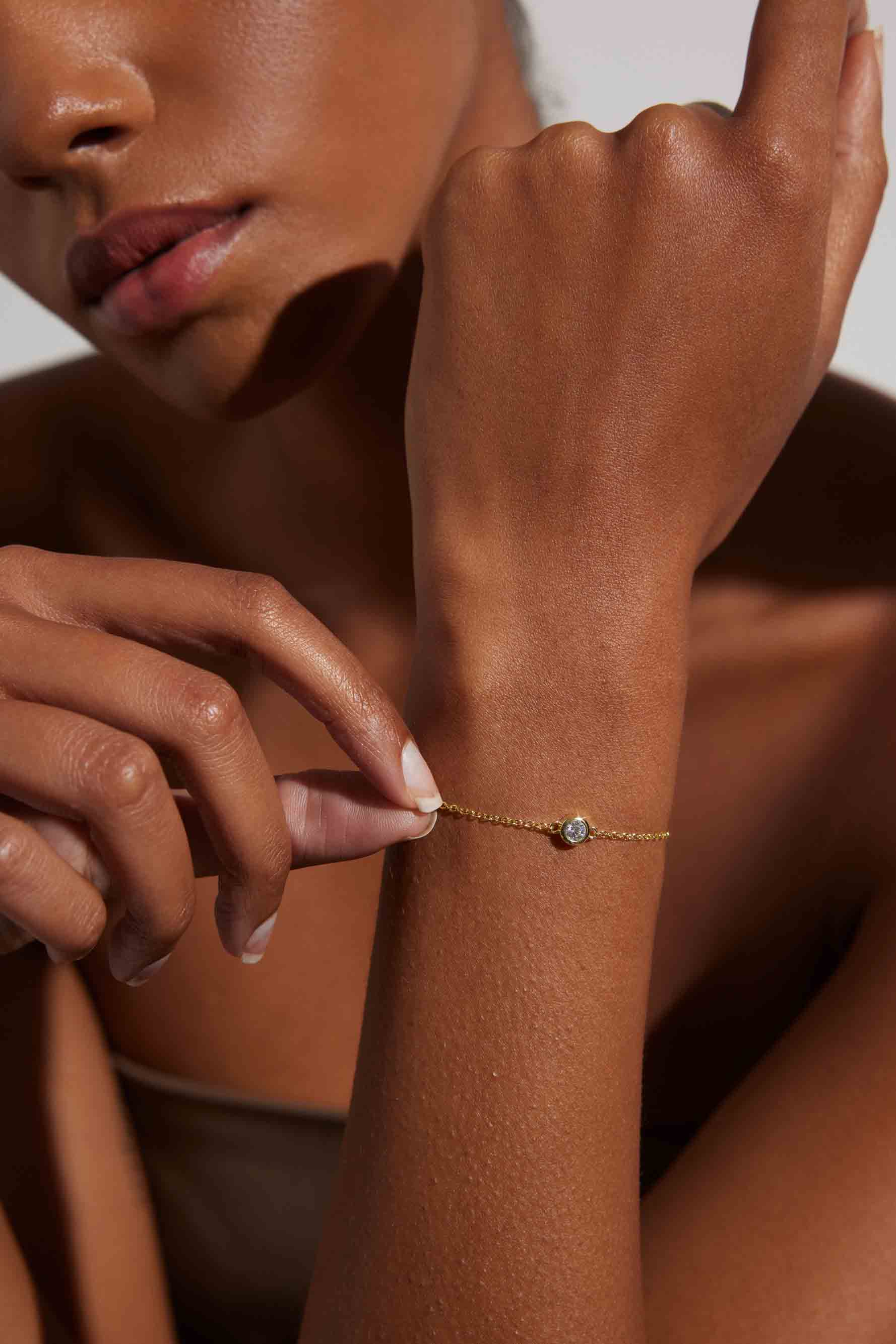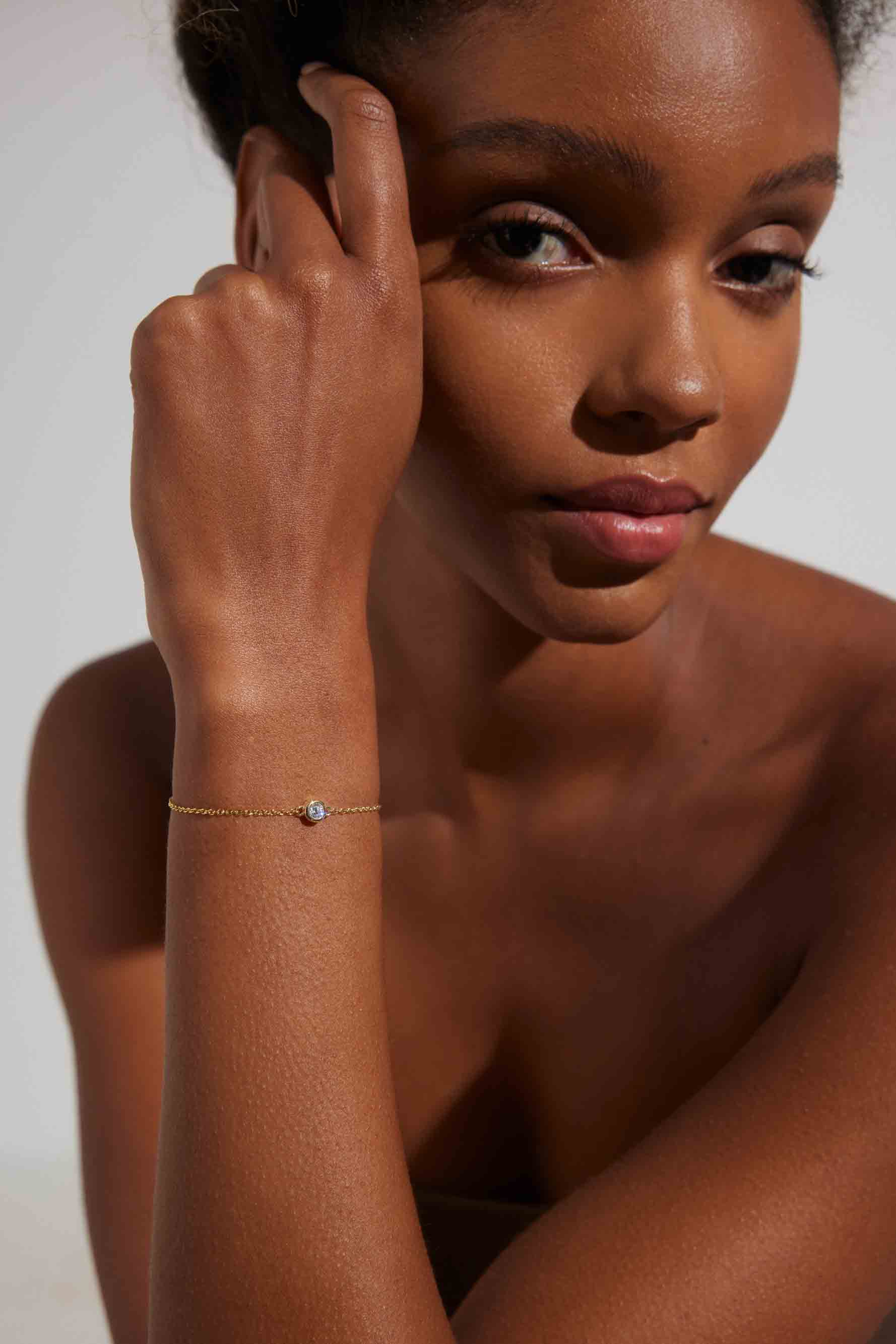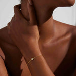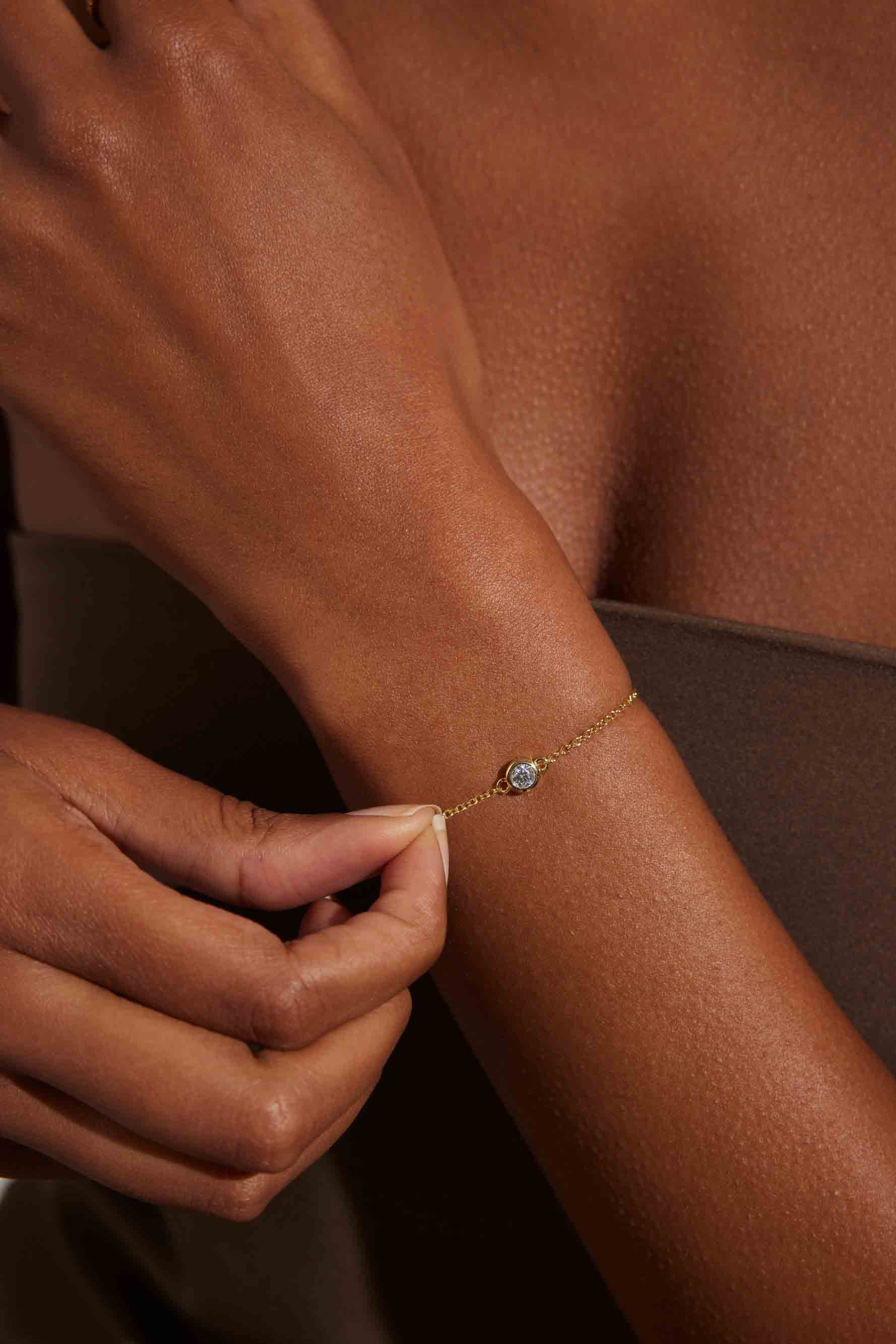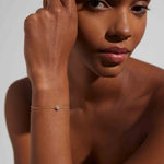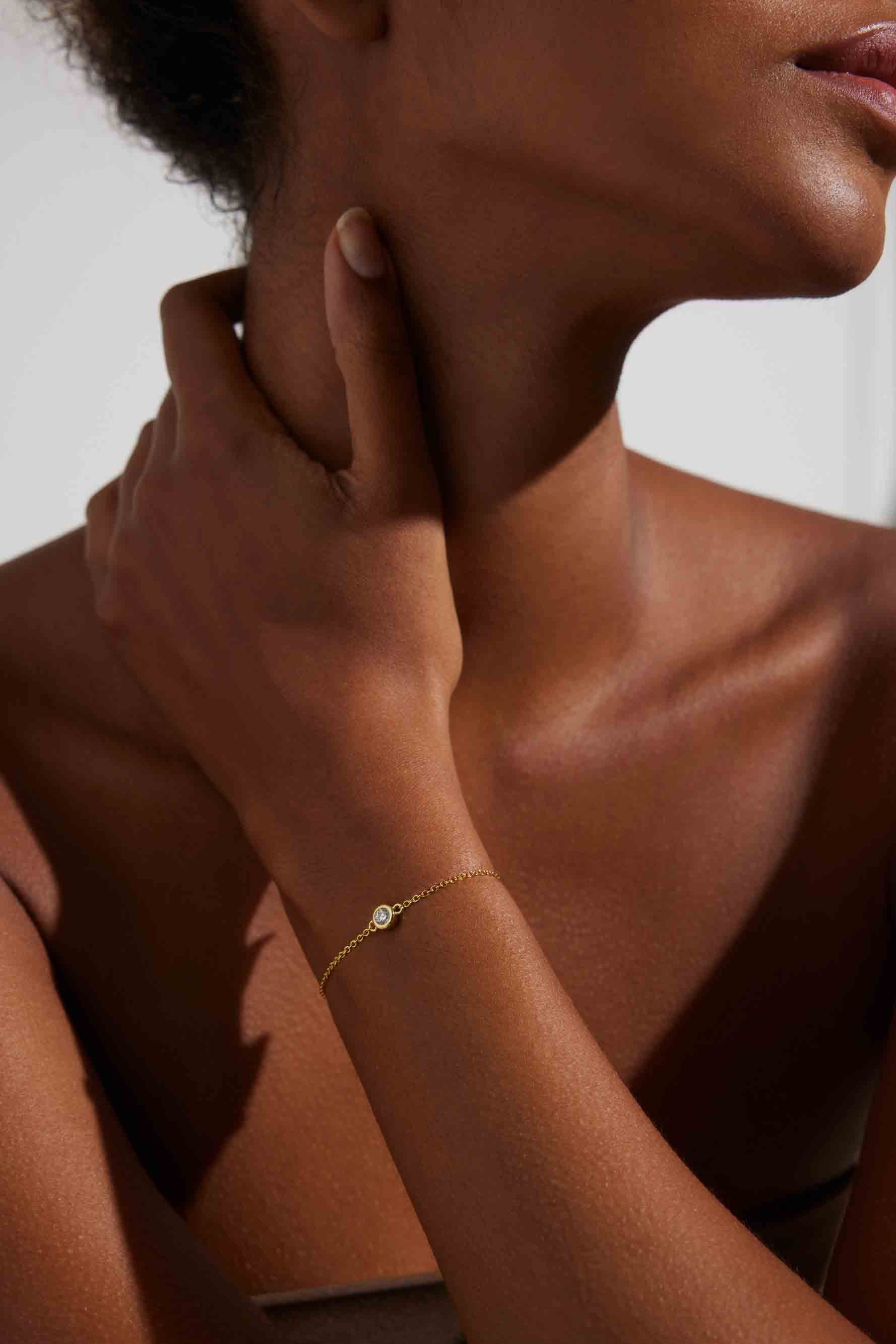 This is a classic, through and through and we wouldn't want it any other way. The bracelet is solid gold with a round cut responsibly sourced Zirconia in a bezel setting. A piece you can hold on to forever (to pass on or keep all to yourself).