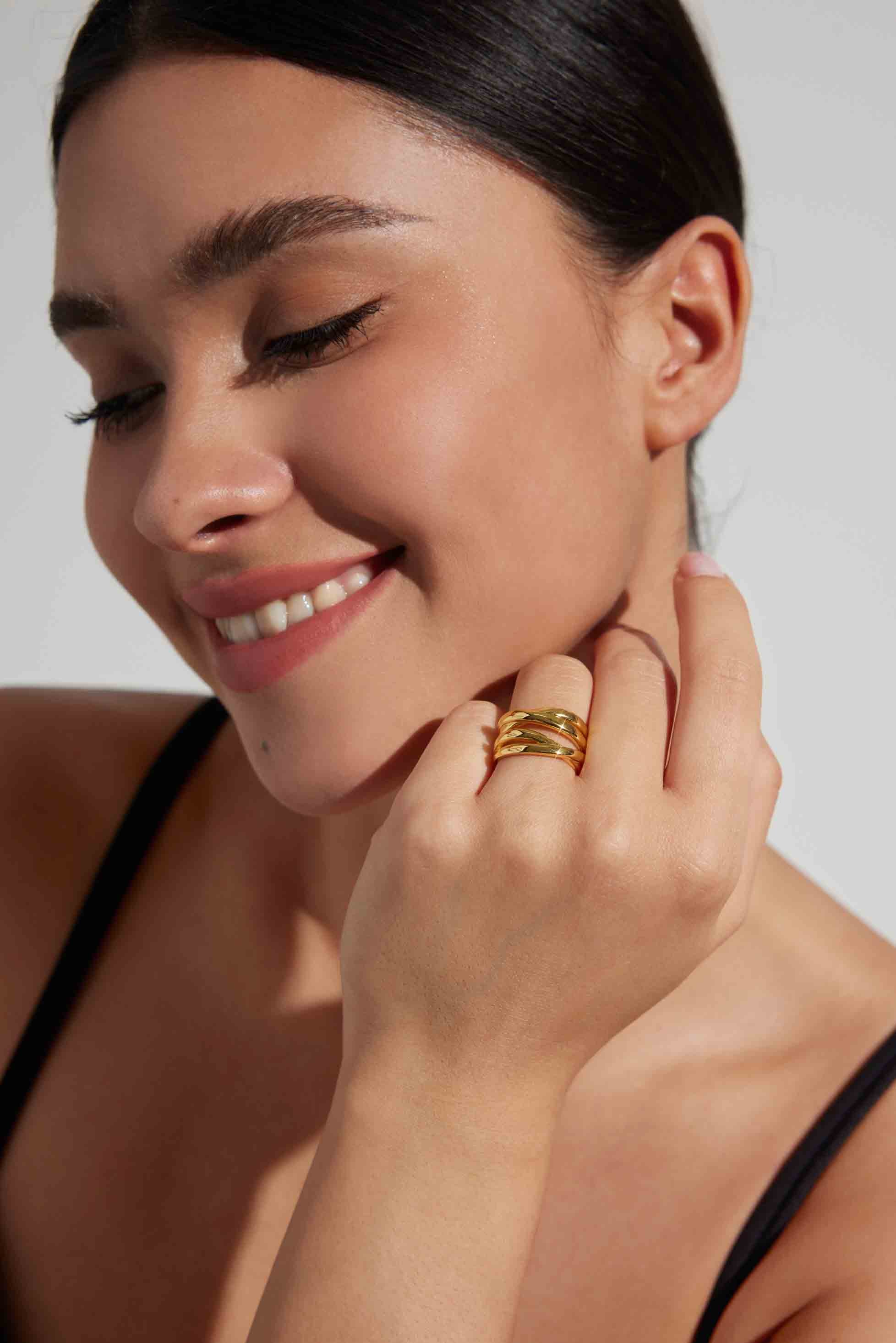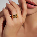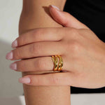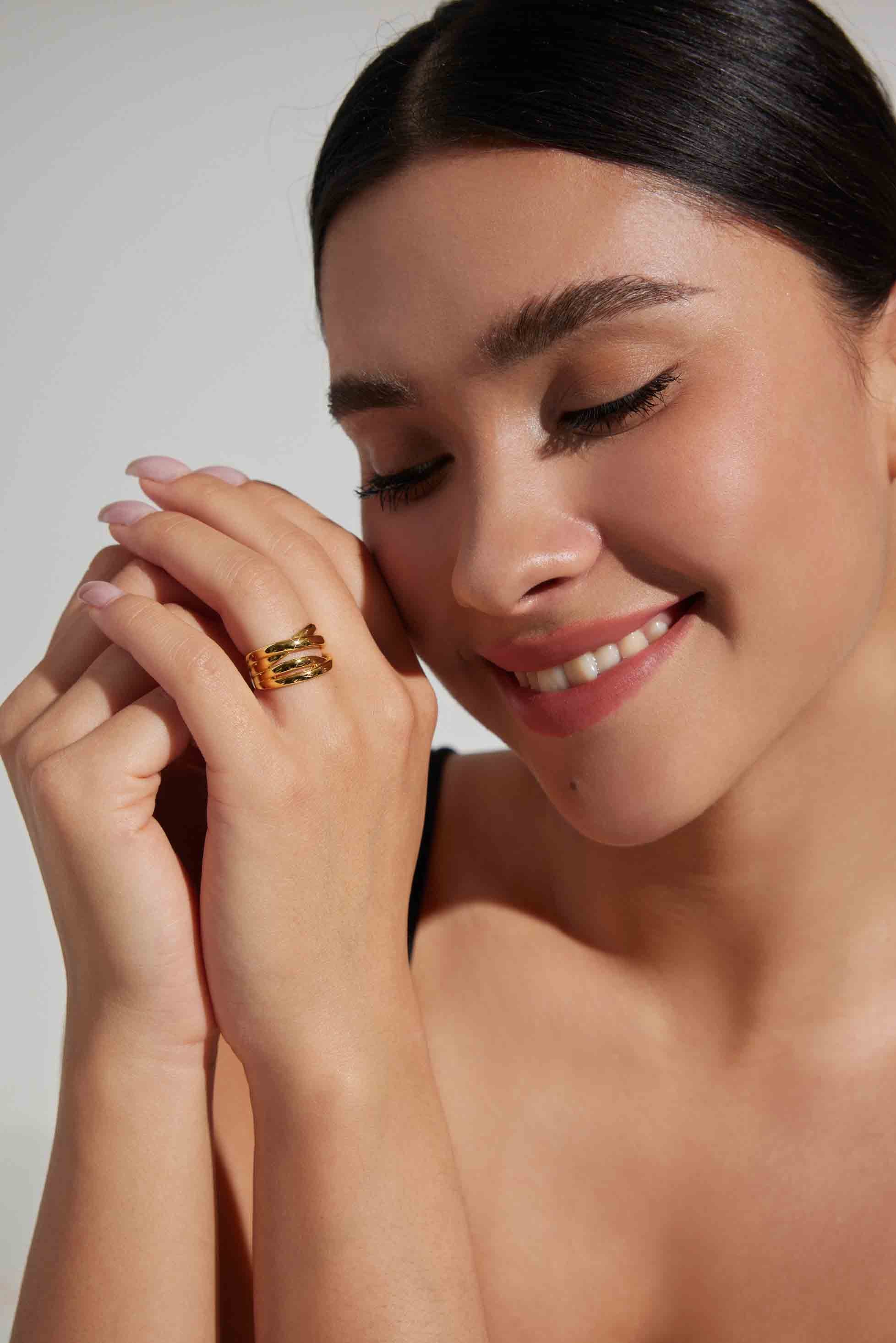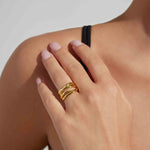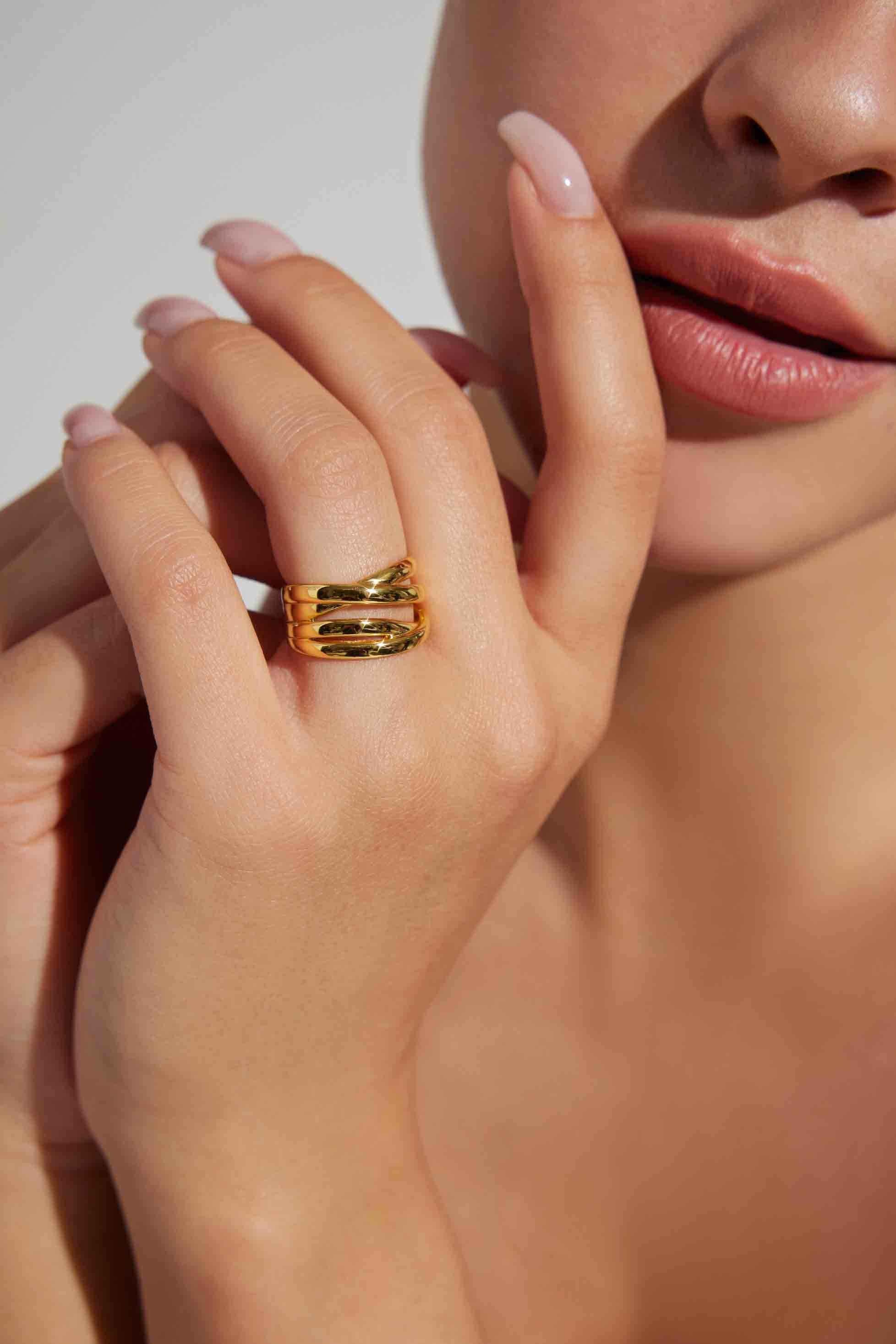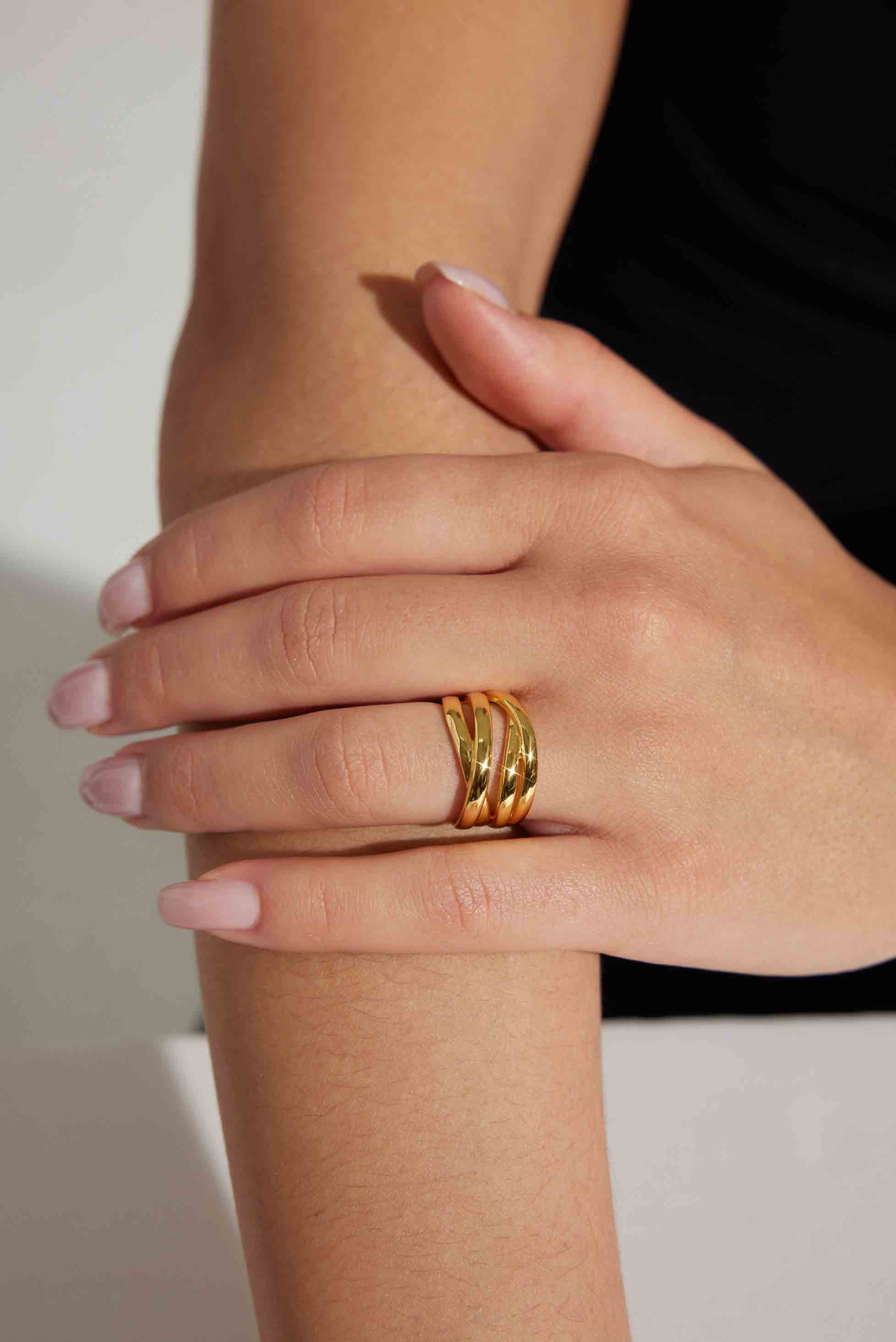 A striking addition to our ring collection. Her wrap-around hugging design features striking raffia-style details. Wear it alone for a strong effect, or stack it with our best-selling rings.