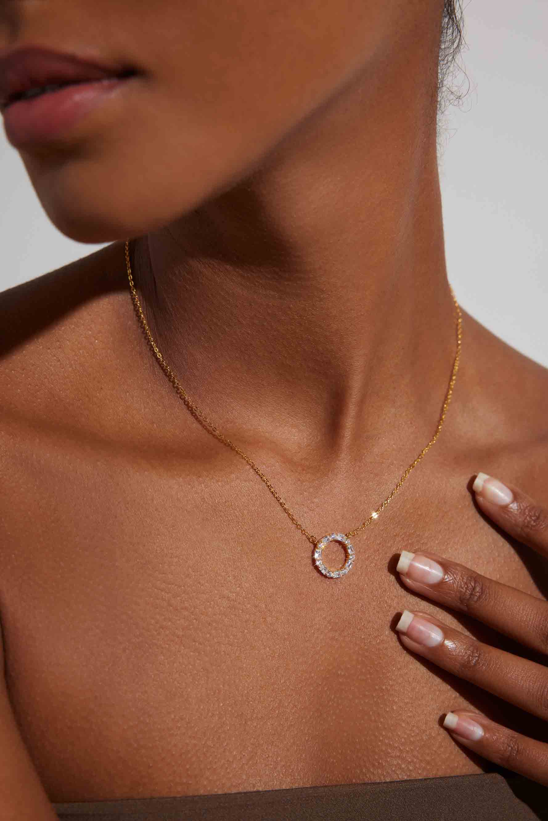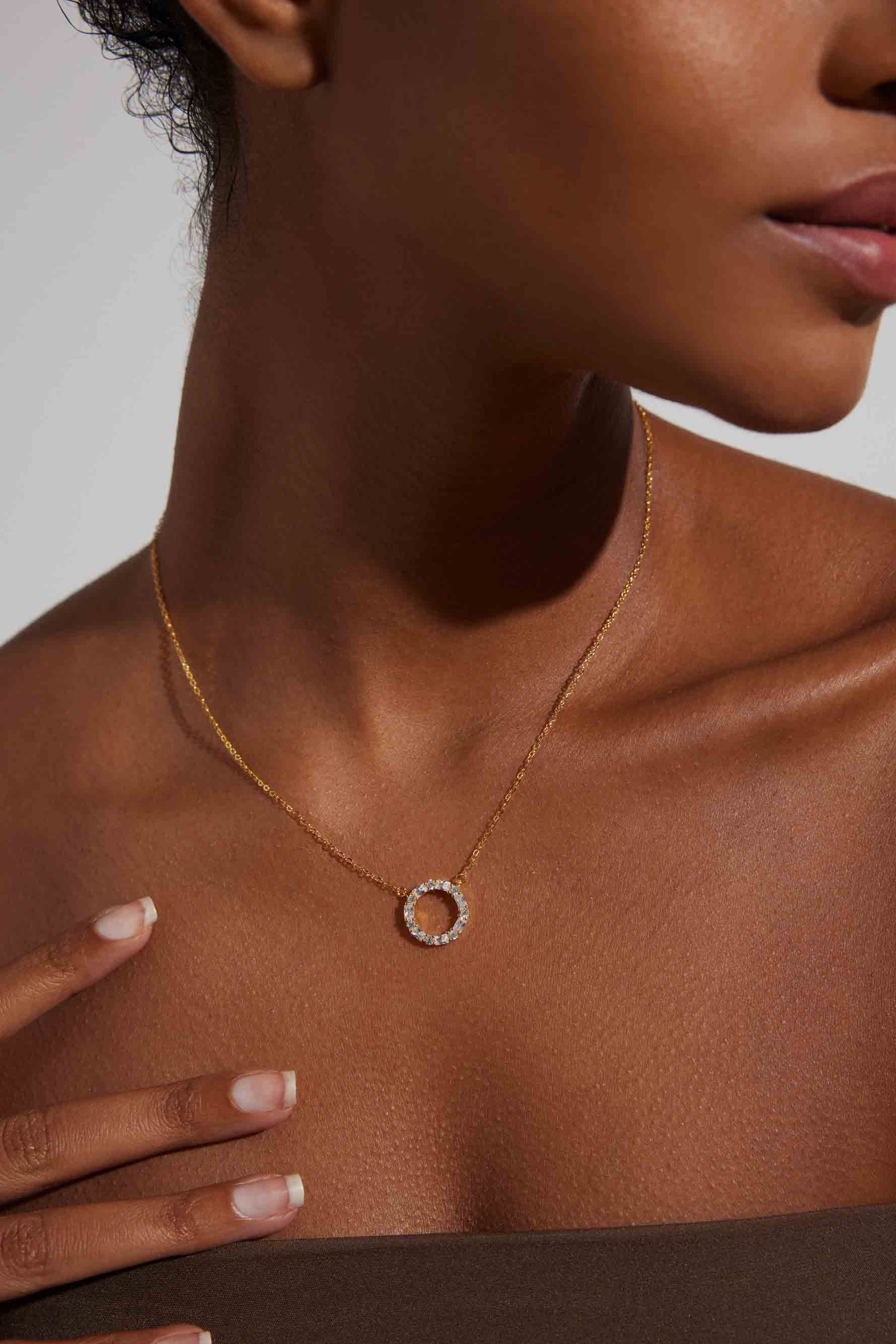 This pendant is custom-cut and assembled into a round diamond shape. The whole pendant is very sparkling and will definitely become a new favorite in your collection.