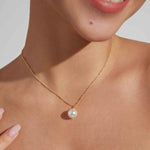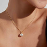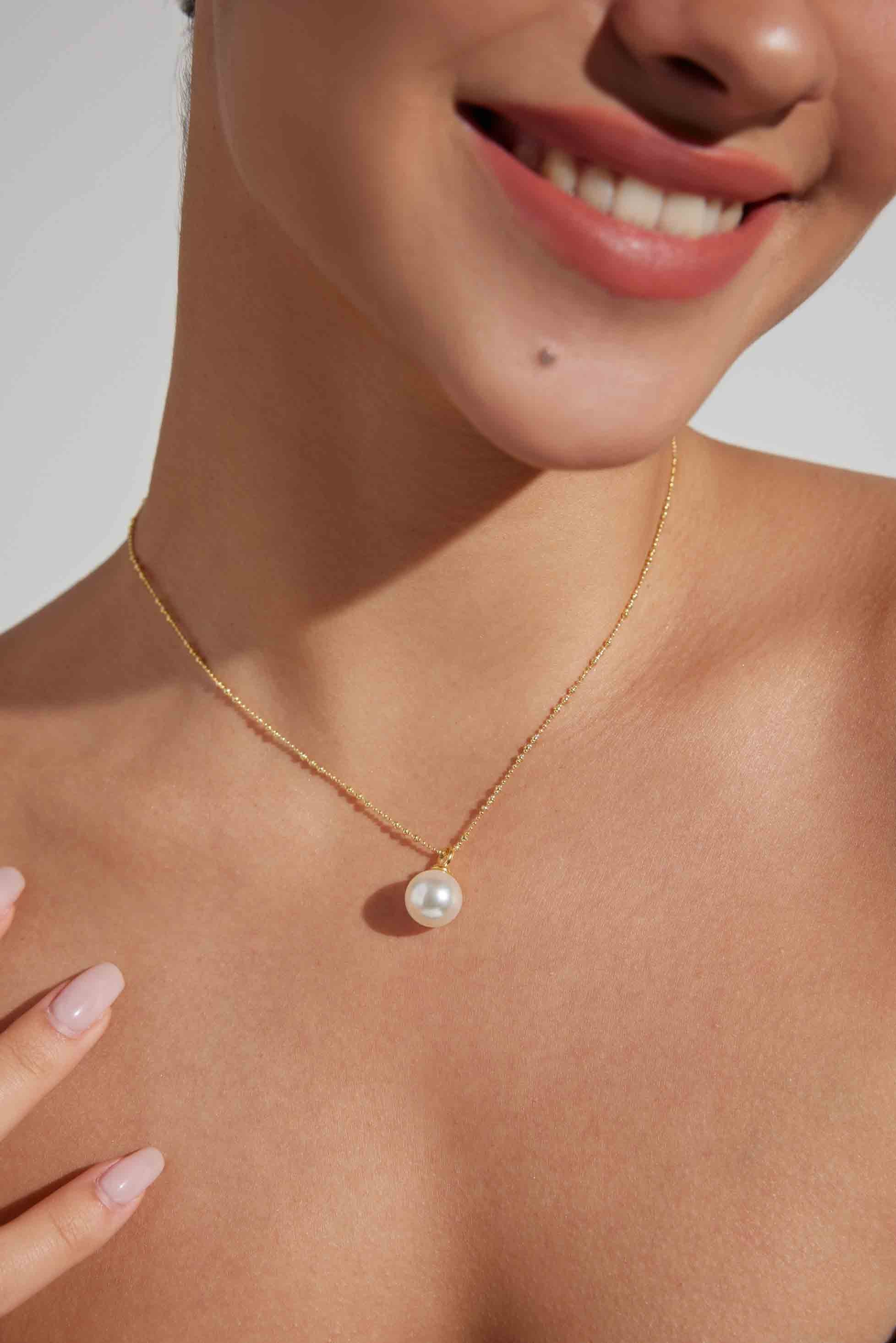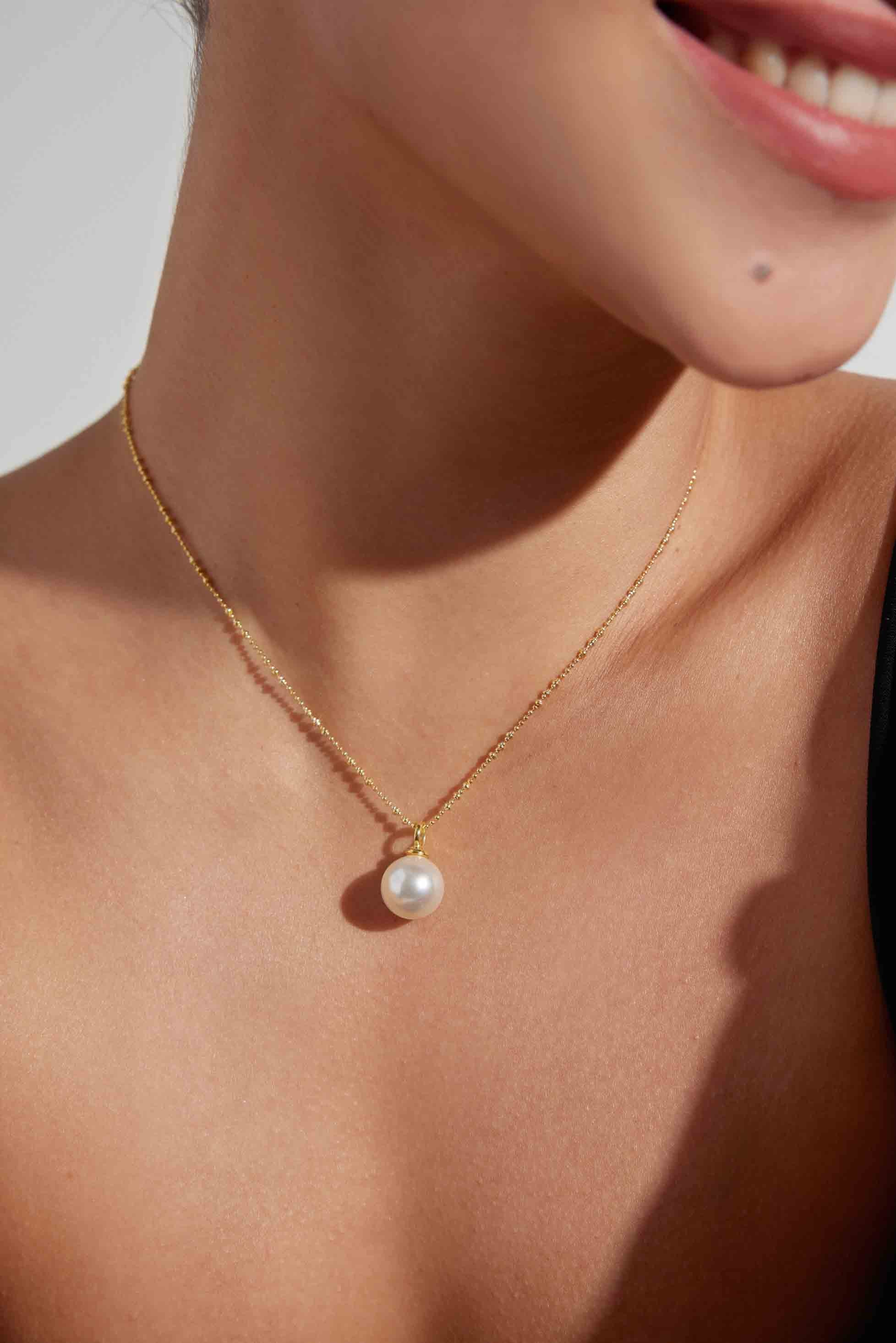 The gold chain is decorated with a large vintage pearl pendant.Like an LBD for your jewelry box. A pearl necklace with endless layering potential. Handcrafted in 18k gold vermeil with freshwater pearls.