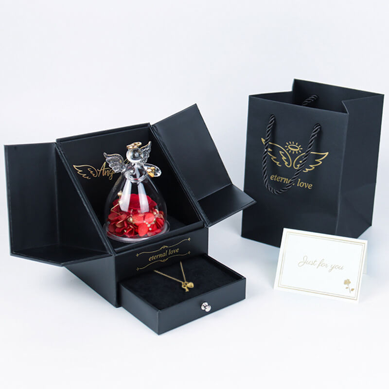 What could be more attractive to women than these two things? This is a lovely gift with unique design, meaning unique love.The preserved real rose never withers means eternal love.We believe it will be an infallible gift for her on special day!