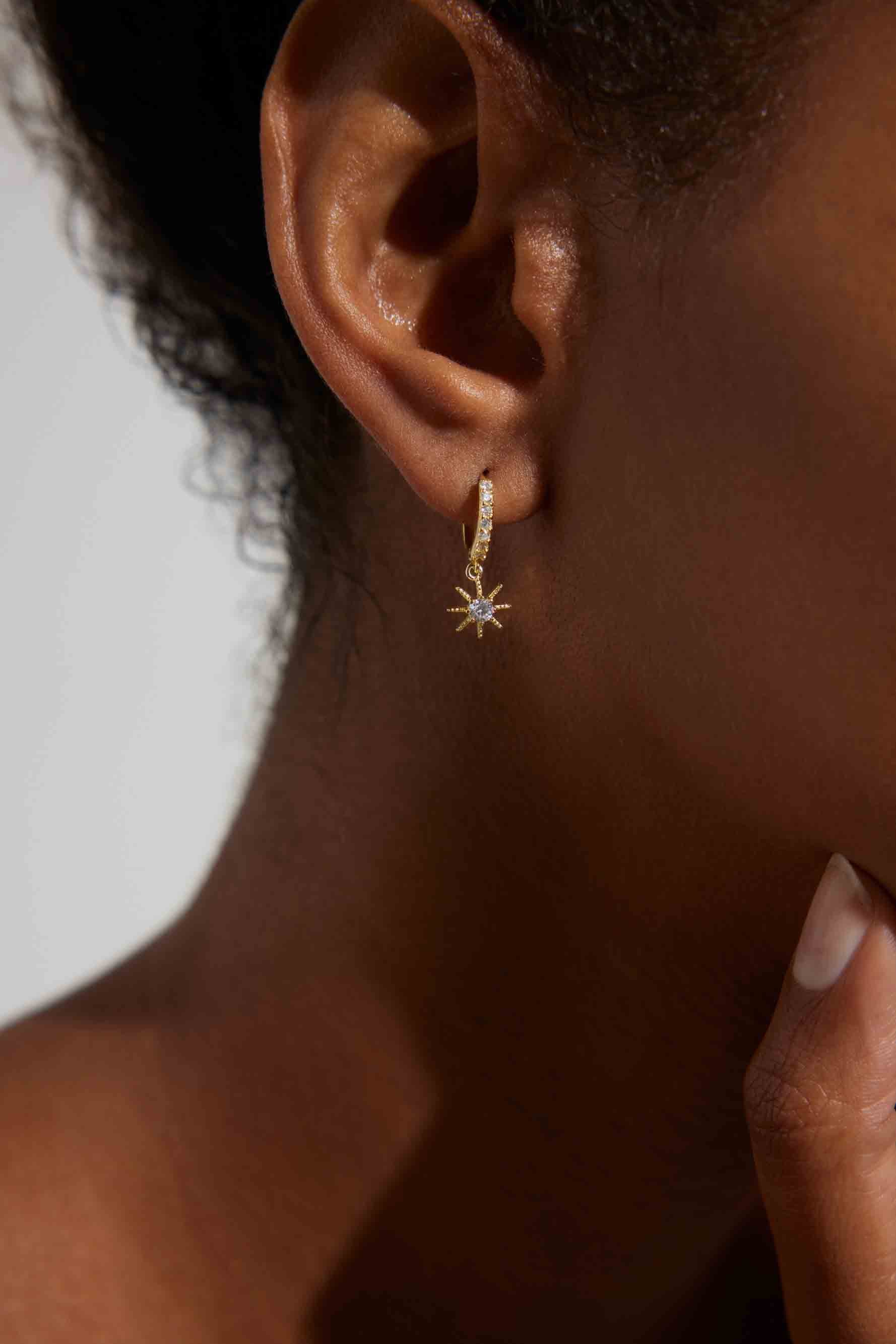18K Gold Vermeil Diamond Star Dangles Hoop Earrings – Kira LaLa