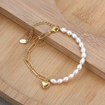The Tide's Smile Bracelet combines pearls with golden peach hearts, creating a joyful and captivating accessory. Each piece is meticulously crafted with carefully selected pearls and golden peach hearts, chosen for their exceptional color and luster.