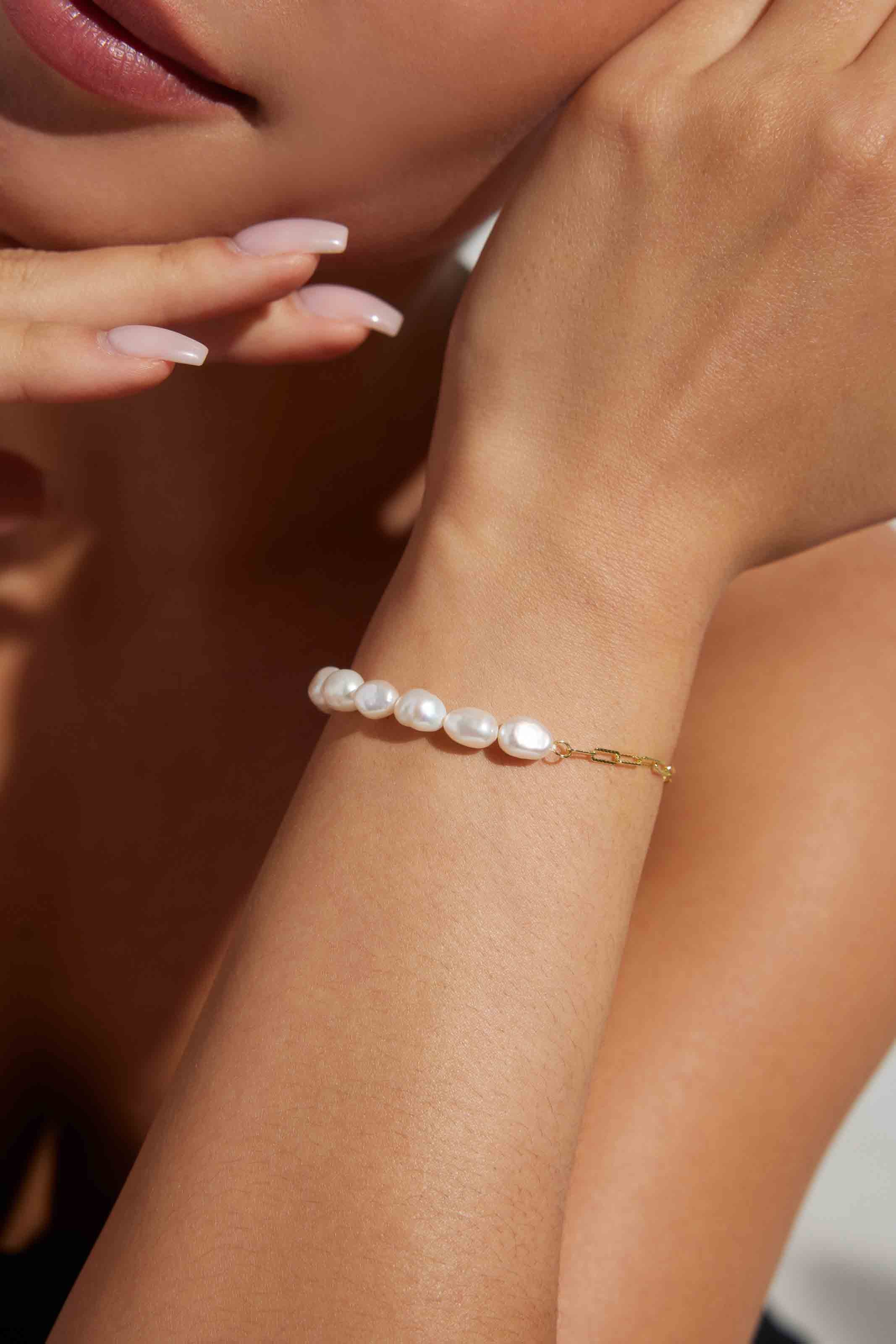 Nine Egg-shaped Baroque Pearls Half Link Chain Bracelet – Kira LaLa