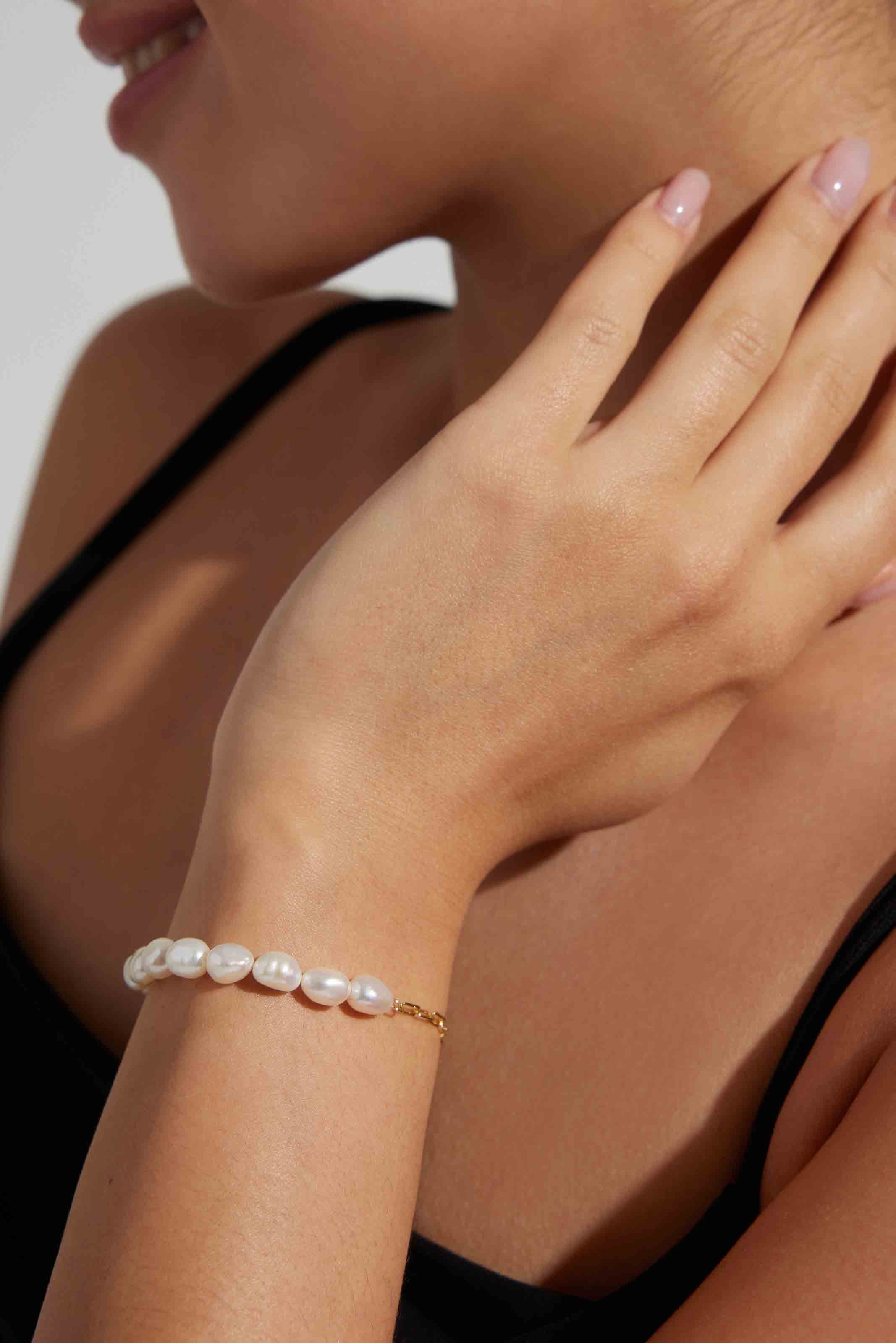Sometimes all you need is a hint. Feast your eyes on this tiny little number that’ll make itself right at home. A string of small pearls arranged together is both gentle and brave, conveying infinite elegance to you.Handcrafted in 18k gold vermeil featuring freshwater pearls.