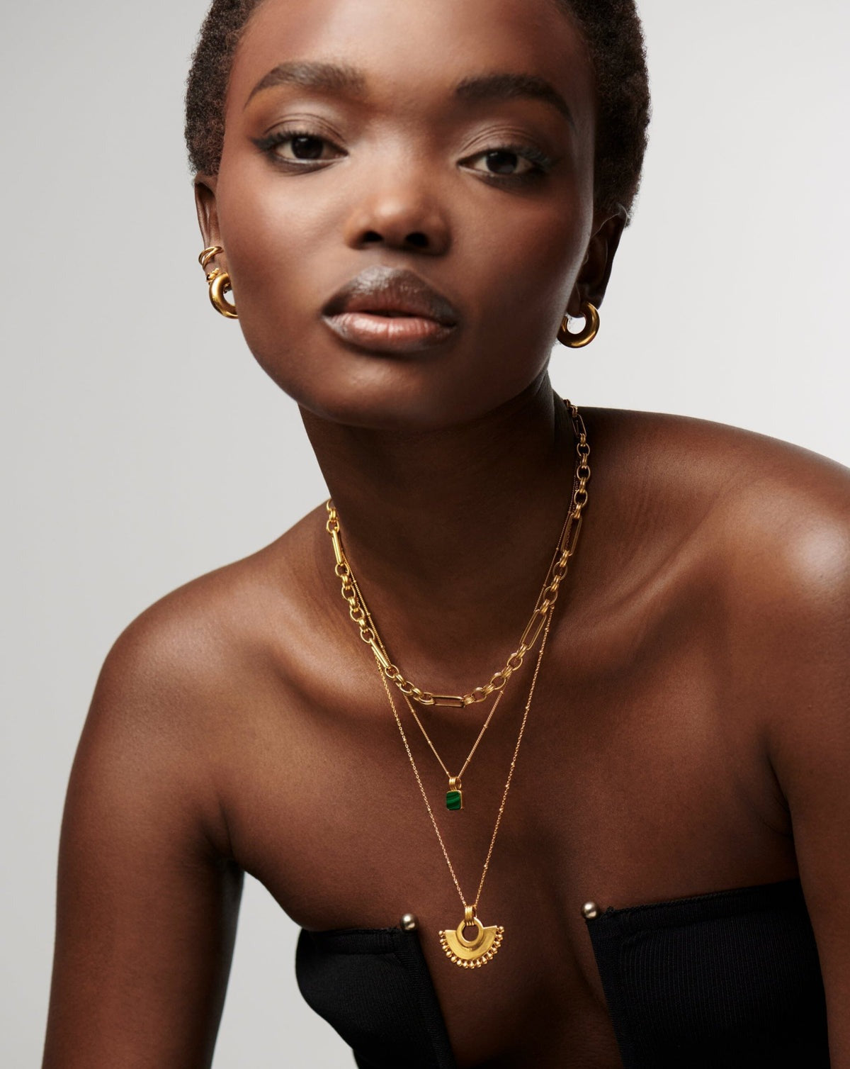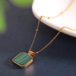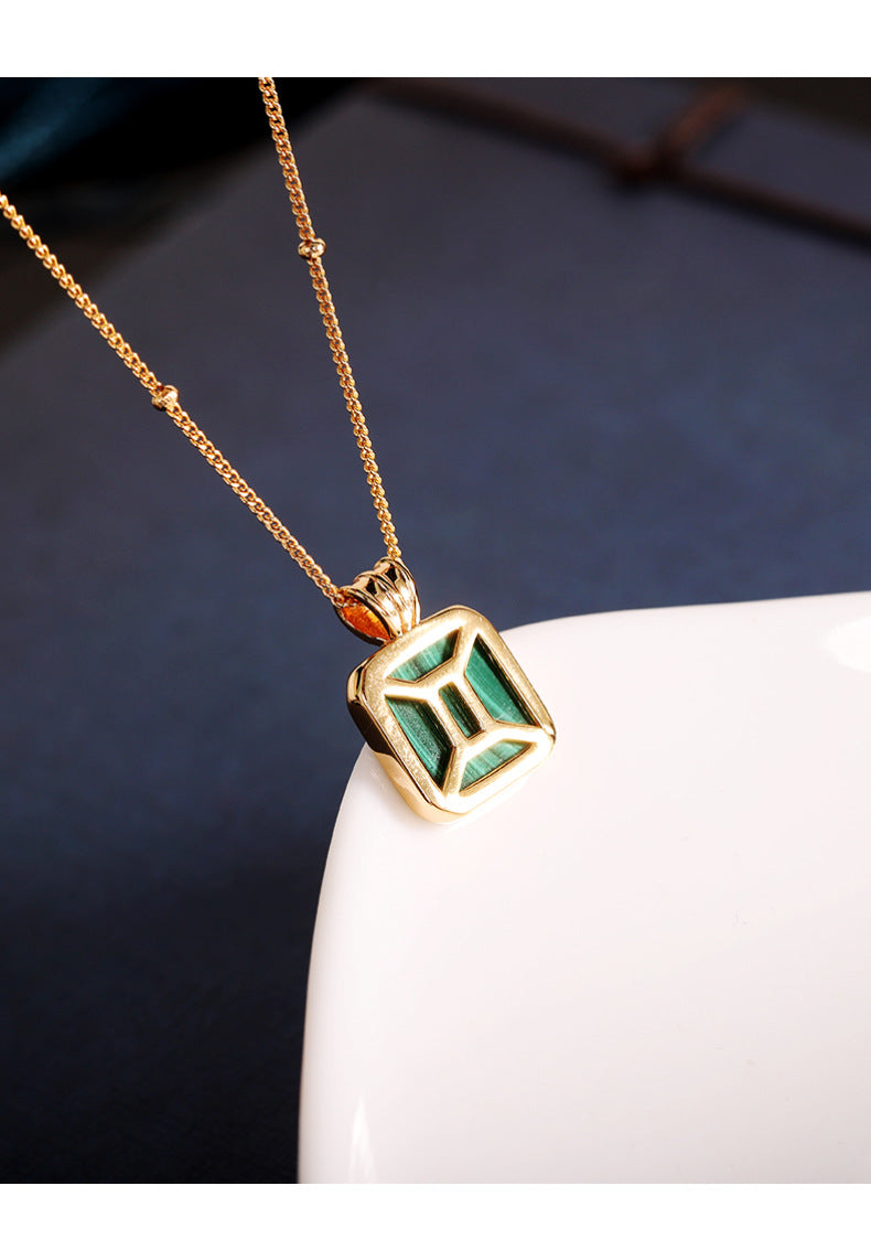 Paired with a delicate chain, the square malachite pendant, known as the transformation stone, creates a distinctive focal point. A semi-precious addition to your layers. Layer this best selling piece with a longer necklace or coin choker for a you'll never take off.